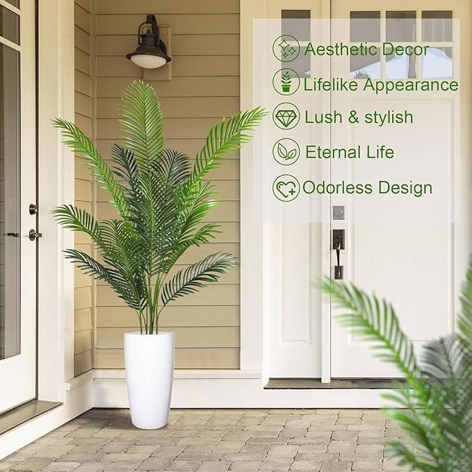 This artificial areca palm is perfectly suited for residential and commercial use, including homes, offices, cafés, retail stores, hospitality spaces, and corporate interiors. It creates a welcoming atmosphere while offering a practical, long-lasting décor solution that remains vibrant throughout the year. Free from allergens, mess, or seasonal changes, it provides the beauty of nature with none of the hassle.
